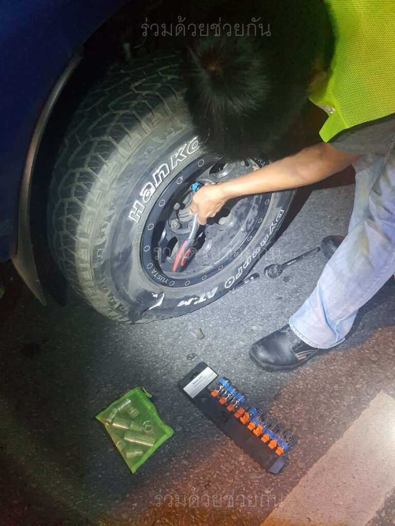 อาสาร่วมด้วยช่วยกัน ช่วยเหลือประชาชนรถกระบะยางแตก ถนนพระราม 2 ขาออก