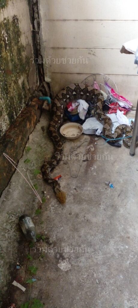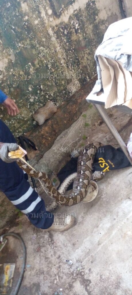 อาสาร่วมด้วยฯ ให้การช่วยเหลือจับงูเหลือมเข้าบ้าน หมู่บ้านศุภาวัลย์ ถนนเลียบคลองสาม ต.คลองสาม อ.คลองหลวง จ.ปทุมธานี