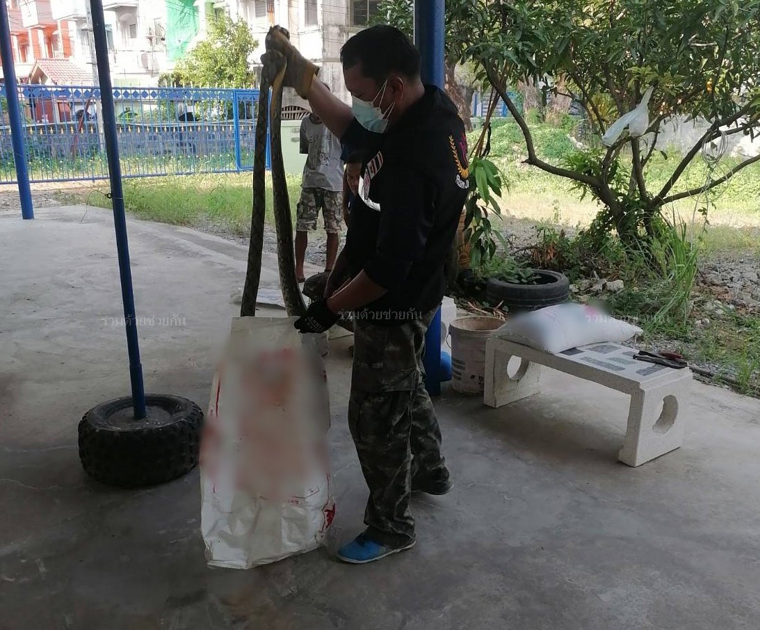 จับได้แล้ว!! งูเหลือมเข้าบ้านกินแมว ซอยรามอินทรา 40