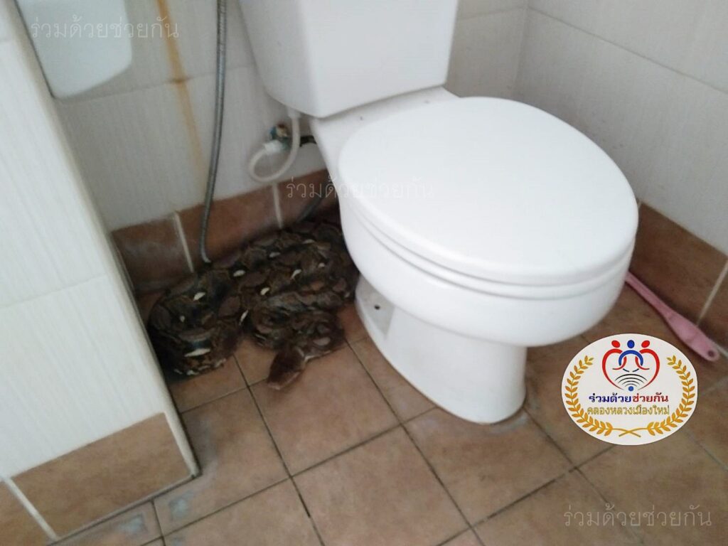 งูเหลือมซุกห้องน้ำ อ.ธัญบุรี จ.ปทุมธานี
