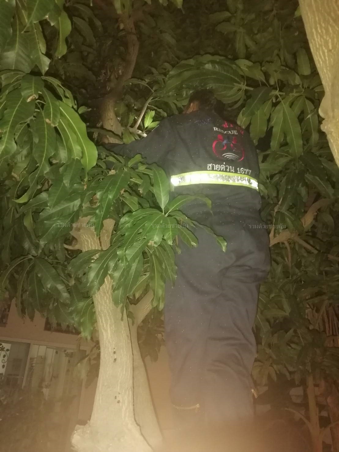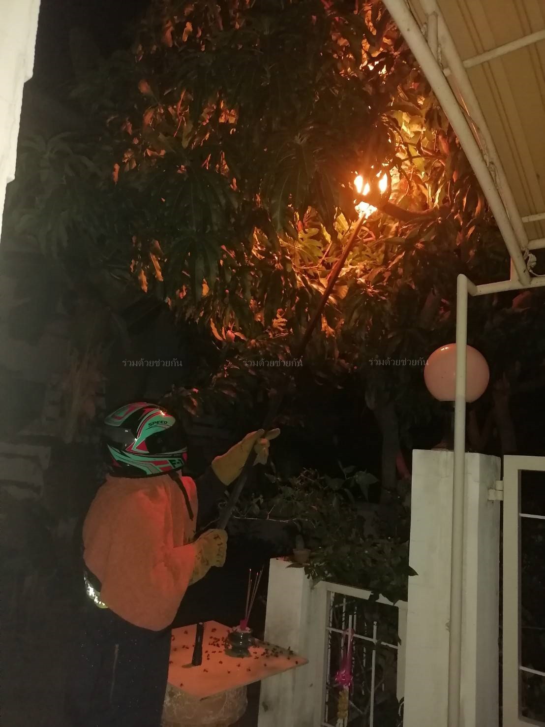 ศูนย์สื่อสารร่วมด้วยช่วยกัน ประสาน อาสาร่วมด้วยฐานคุ้มภัย เข้าไปช่วยเหลือ ตรวจสอบพบผึ้งทำรังบนต้นมะม่วงหน้าบ้าน อาสาฯ จึงนำอุปกรณ์จุดไฟรมควันไล่ผึ้งออกจากรัง เคลื่อนย้ายออกจากพื้นที่ให้เป็นที่เรียบร้อย เพื่อความปลอดภัยของผู้พักอาศัย