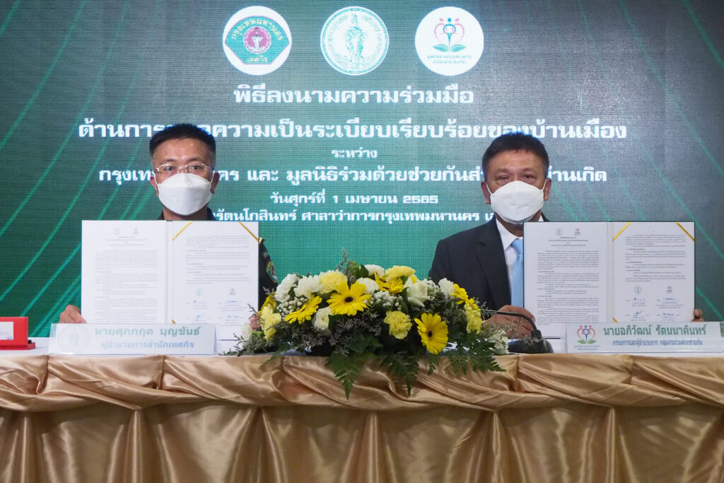 กรุงเทพมหานคร จับมือ มูลนิธิร่วมด้วยช่วยกันสำนึกรักบ้านเกิด ลงนามบันทึกข้อตกลง (MOU) ในการดูแลความเป็นระเบียบเรียบร้อยของบ้านเมือง ณ ศาลาว่าการกรุงเทพมหานคร