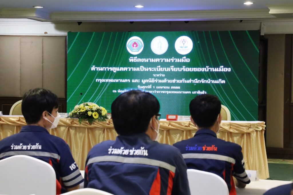 วันที่ 1 เมษายน 2565 นายศุภกฤต บุญขันธ์ ผู้อำนวยการสำนักเทศกิจ กรุงเทพมหานคร ลงนามบันทึกข้อตกลงความร่วมมือในการดูแลความเป็นระเบียบเรียบร้อยของบ้านเมือง ระหว่างกรุงเทพมหานคร กับมูลนิธิร่วมด้วยช่วยกันสำนึกรักบ้านเกิด มีนายอภิวัฒน์ รัตนนาคินทร์ กรรมการและผู้อำนวยการกลุ่มงานร่วมด้วยช่วยกัน มูลนิธิร่วมด้วยช่วยกันสำนึกรักบ้านเกิด ร่วมลงนาม ณ ห้องประชุมรัตนโกสินทร์ ศาลาว่าการกรุงเทพมหานคร(เสาชิงช้า)