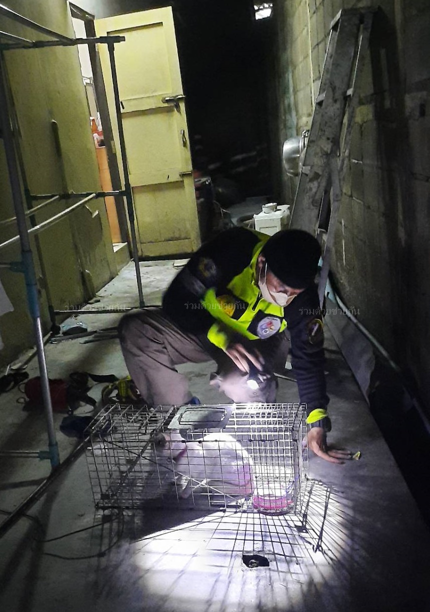 ศูนย์วิทยุร่วมด้วยช่วยกัน ประสาน อาสาร่วมด้วยช่วยกัน เข้าไปช่วยเหลือ ตรวจสอบพบแมวติดอยู่บนหลังคาบ้านชั้นที่ 2 อาสาฯ จึงนำกรงดักขึ้นไปวางไว้ ใช้เวลาประมาณ 2 ชั่วโมง แมวเข้ามากินอาหารติดกับดัก สามารถนำลงมาด้านล่างได้อย่างปลอดภัย ตามหาเจ้าของนำแมวส่งคืนให้เรียบร้อย