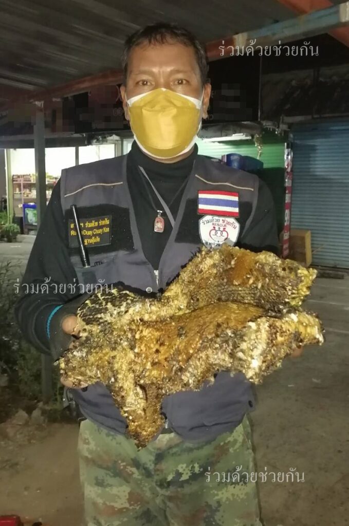 ประชาชนขอความช่วยเหลือกำจัดรังผึ้งอยู่บนต้นไม้ ถ.หทัยราษฎร์ อาสาร่วมด้วยเข้าให้การช่วยเหลือเป็นที่เรียบร้อย