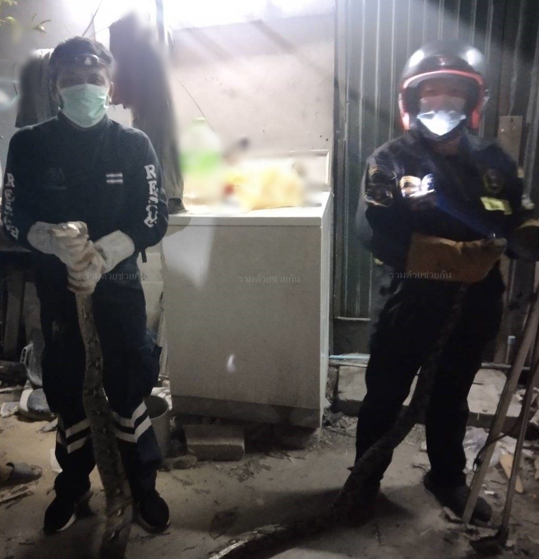 งูเหลือมบุกโกดัง ย่านยานนาวา แจ้งอาสาช่วยจับ