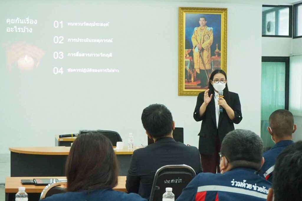 เสริมสร้างความรู้ ความเข้าใจเกี่ยวกับ ระบบบัญชาการเหตุการณ์ (ICS) การนำเสนอข่าวและการรายงานเหตุการณ์สาธารณภัย ที่ถูกต้องเหมาะสม การประเมินสถานการณ์เพื่อเพิ่มการสื่อสาร ณ.จุดเกิดเหตุและการเผชิญเหตุเบื้องต้นอย่างปลอดภัย รวมถึงรับฟังการบรรยายขั้นตอนการทำงานของร่วมด้วยช่วยกัน ณ.ห้องประชุมสำนักป้องกันและบรรเทาสาธารณภัย อาคารกองปฏิบัติการดับเพลิงและกู้ภัย ชั้น 2