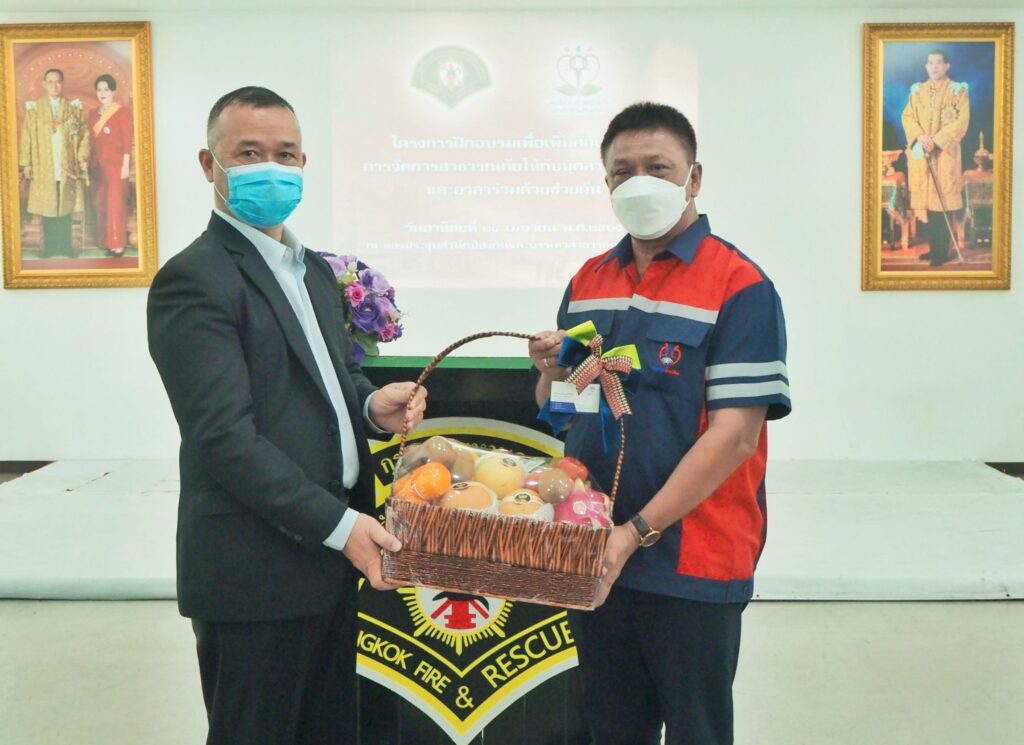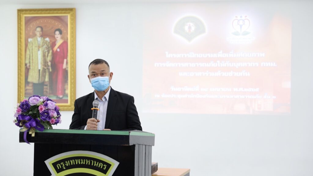 24 เม.ย. 65 นายธีรยุทธ ภูมิภักดิ์ ผอ.สำนักป้องกันและบรรเทาสาธารณภัย ประธานในพิธี พร้อมด้วยนายพัลลภ ไพฑูรย์บัวทอง ผอ.สำนักงานอำนวยการสาธารณภัย สปภ.กทม. นาย กร ดีลี ผอ.ส่วนช่วยบัญชาการสาธารณภัย สำนักป้องกันและบรรเทาสาธารณภัย นายอภิวัฒน์ รัตนนาคินทร์ ผอ.ร่วมด้วยช่วยกัน และนายวีระศักดิ์ ดำพิทักษ์ รอง ผอ.ร่วมด้วยช่วยกัน มูลนิธิร่วมด้วยช่วยกันสำนึกรักบ้านเกิด ร่วมเปิดอบรมโครงการฝึกอบรมเพื่อเพิ่มศักยภาพการจัดการสาธารณภัยให้กับบุคลากร กทม.และอาสาร่วมด้วยช่วยกัน