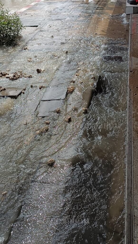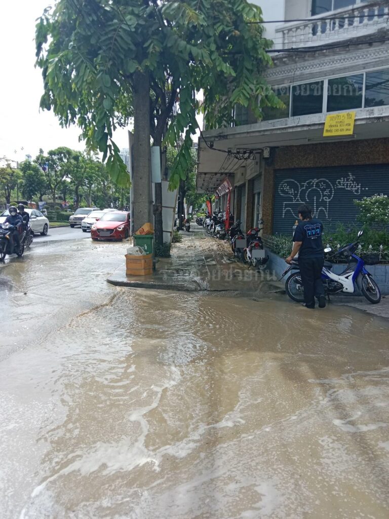 ท่อประปาแตกรั่ว ถนนพระราม 4 ขาเข้า หน้าศูนย์ฮอนด้ารุ่งเรืองยานยนต์ ก่อนถึง รพ.เทพธารินทร์ เขตคลองเตย กรุงเทพฯ