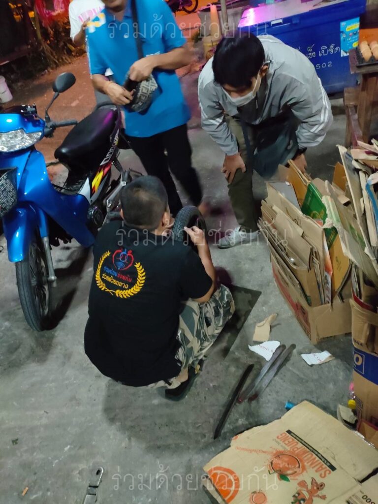 อาสาร่วมด้วยช่วยกัน ช่วยเหลือประชาชนรถจยย.จอดเสียล้อยางรั่ว ซอยกรุงเทพกรีฑา 3