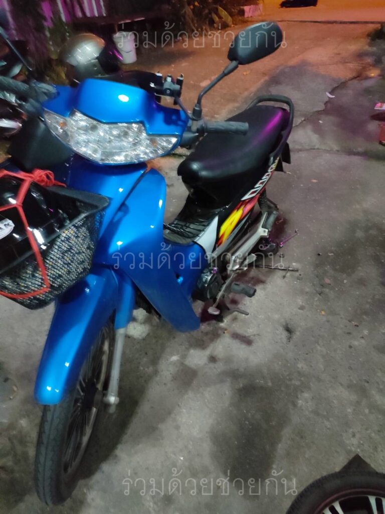 ตรวจสอบ พบรถจักรยานยนต์ฮอนด้า เวฟ 110 สีน้ำเงินดำ จอดเสียล้อยางรั่ว อาสาฯเข้าดำเนินการใช้อุปกรณ์แก้ไขได้สำเร็จ สามารถขับขี่ต่อไปได้