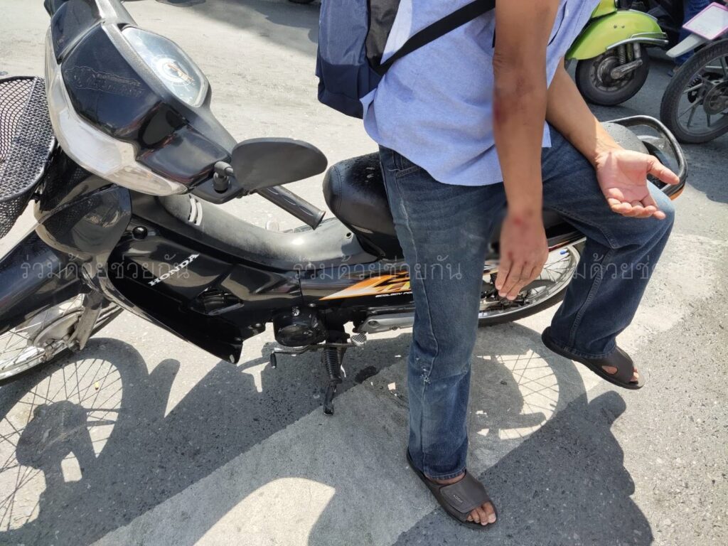 อาสาร่วมด้วยช่วยกัน ตรวจสอบ พบผู้บาดเจ็บชาย 1 ราย มีแผลถลอกตามร่างกาย จึงให้การปฐมพยาบาลเบื้องต้น ก่อนอาสามูลนิธิร่วมกตัญญู จุดบางซื่อ 407 นำส่งรพ.เทพธารินทร์ พื้นที่สน.ท่าเรือ