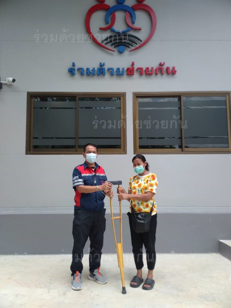 ล่าสุดคุณมาลินีเดินทางเข้ามารับไม้เท้าช่วยพยุง โดยมีเจ้าหน้าที่ร่วมด้วยช่วยกันมอบให้เป็นที่เรียบร้อย
