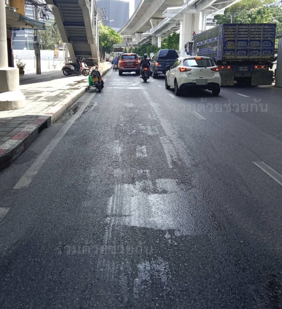เตือนระวัง!! คราบน้ำมันหกบนพื้นถนน ใต้สถานีรถไฟฟ้าบีทีเอส อุดมสุข ถ.สุขุมวิท ขาเข้า