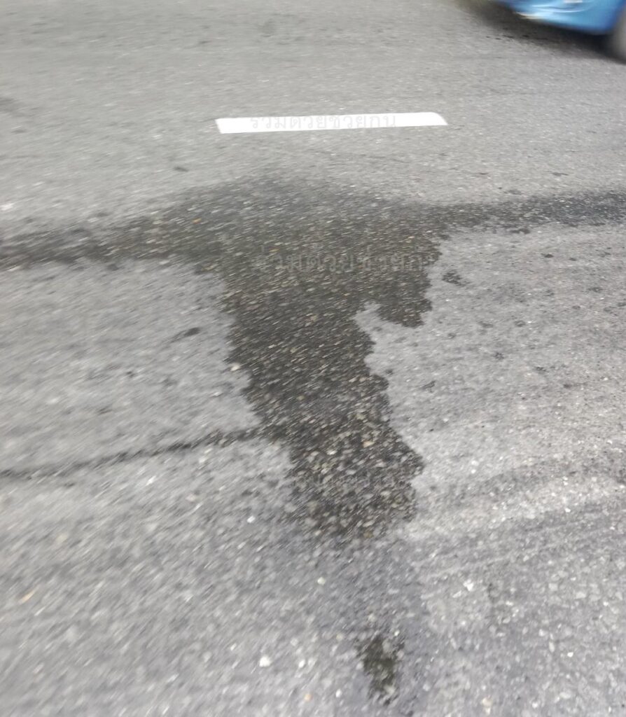 เตือนระวัง!! คราบน้ำมันหกบนพื้นถนน ถ.สุขุมวิท ขาเข้า