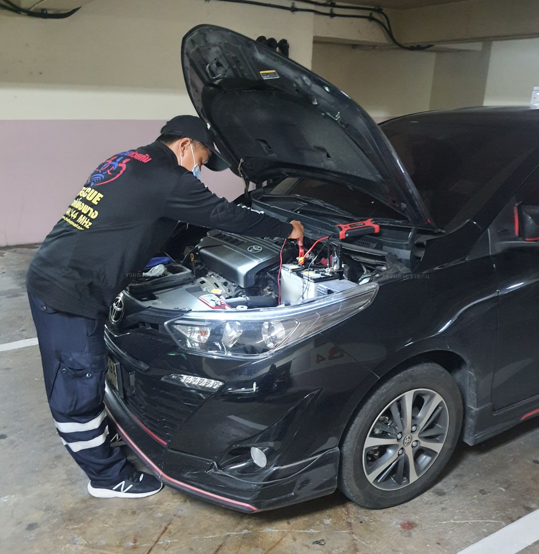 คุณมัลลิกา ขอความช่วยเหลือรถสตาร์ทไม่ติด รถเก๋งโตโยต้า ยาริส สีดำ จอดอยู่ลานจอดรถชั้น 4 ของอาคาร ตั้งอยู่ที่ถนนจันทน์ แขวงทุ่งมหาเมฆ เขตสาทร กรุงเทพฯ