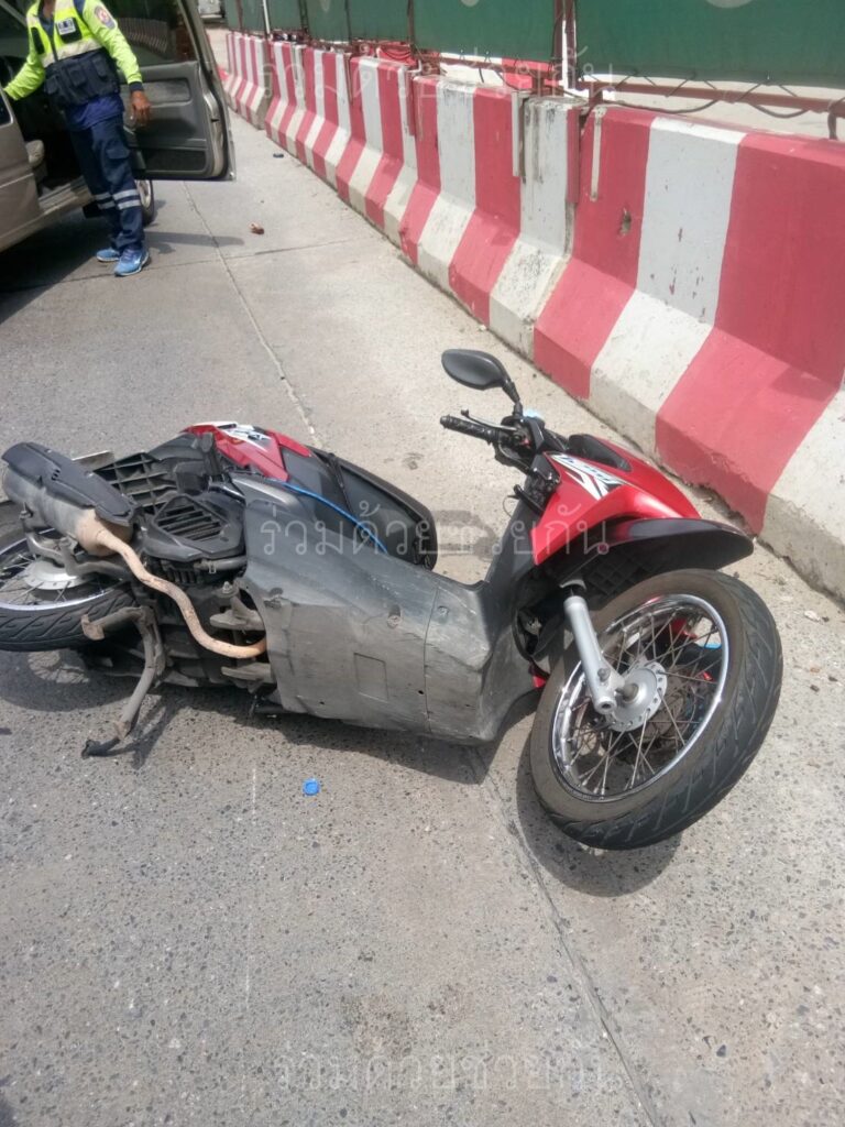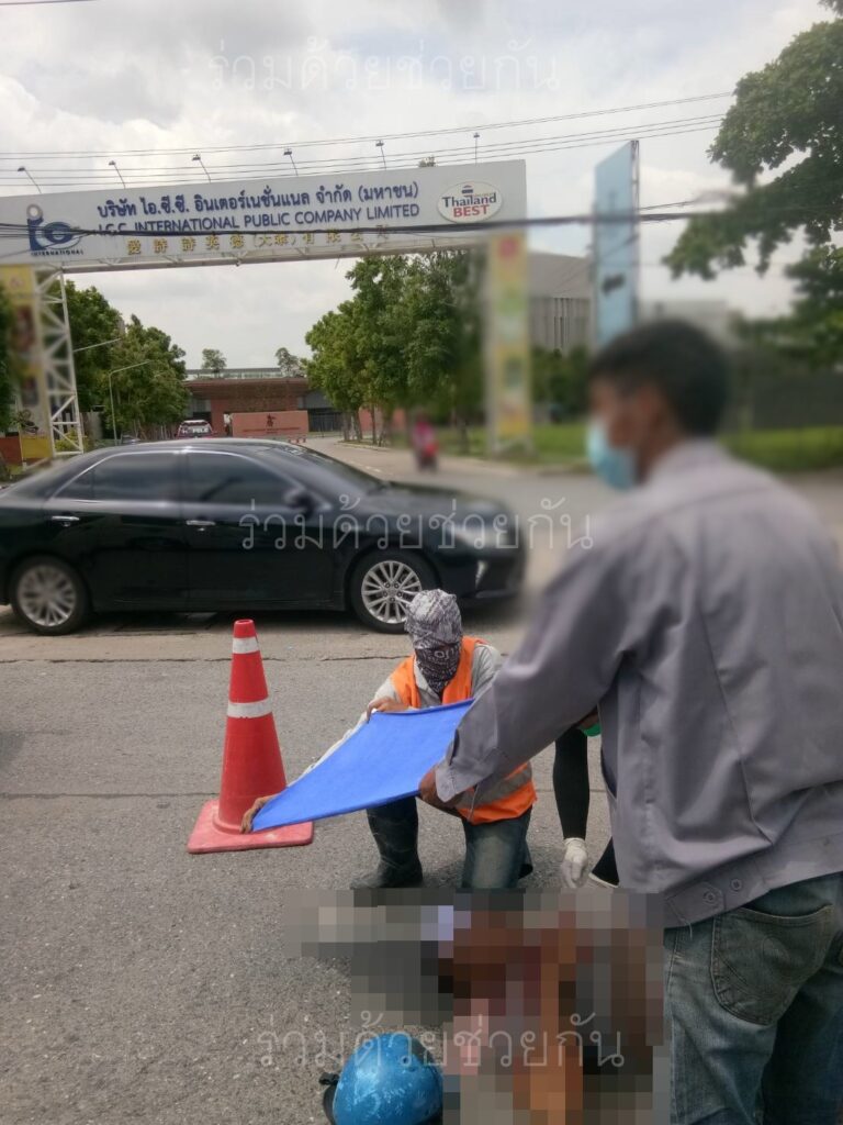 อาสาร่วมด้วยช่วยกัน แจ้งอุบัติเหตุรถจักรยานยนต์ ฮอนด้า คลิก สีดำแดง เสียหลักพลิกคว่ำเอง หน้าบริษัท ไอ.ซี.ซี. อินเตอร์เนชั่นแนล จำกัด (มหาชน) ถนนรัชดาภิเษก กรุงเทพฯ
