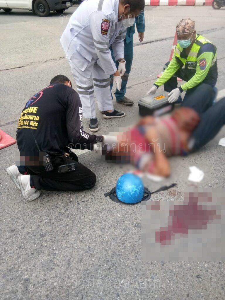 อาสาร่วมด้วยช่วยกัน ช่วยผู้บาดเจ็บจากอุบัติเหตุ จยย.พลิกคว่ำเอง ถนนรัชดาภิเษก