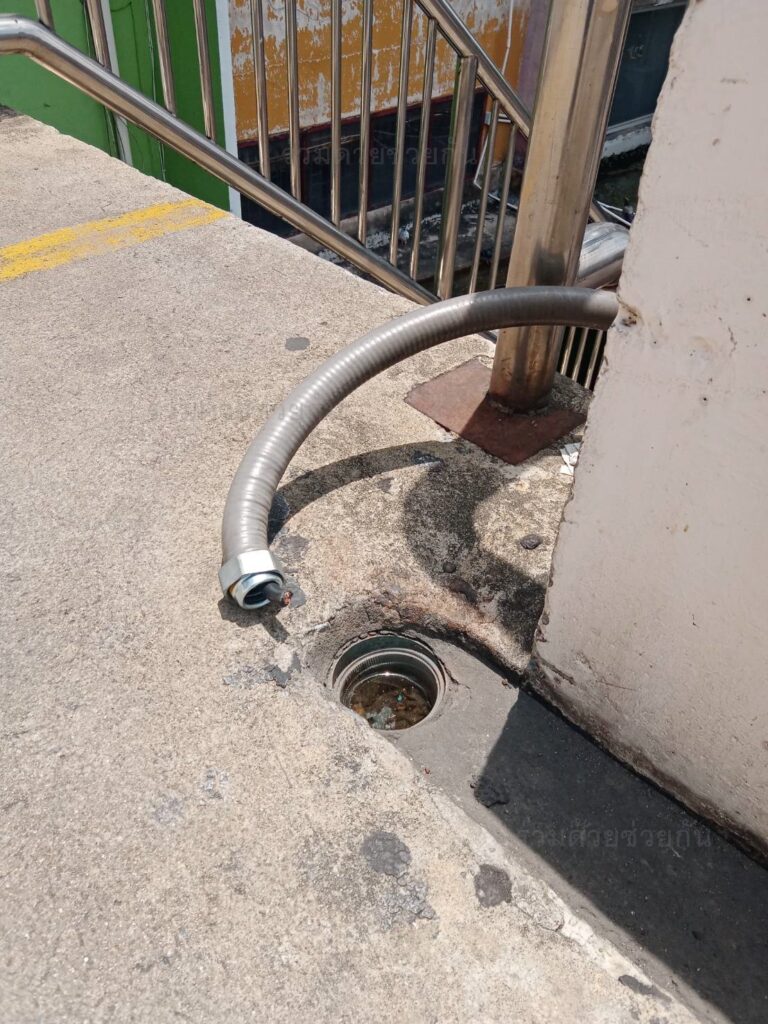 เตือนระวัง!! ท่อร้อยสายไฟชำรุด บนสะพานลอย ปากซอยนวมินทร์ 63