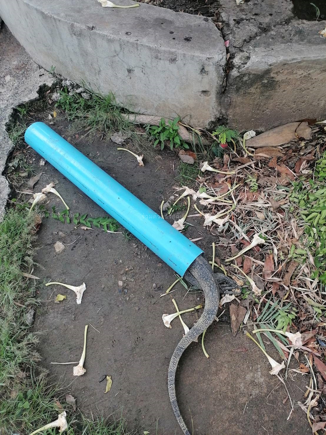 ตรวจสอบพบตัวเงินตัวทองติดคาอยู่ในท่อพีวีซีไม่สามารถขยับตัวได้ อาสาฯจึงเข้าช่วยจนสามารถนำตัวเงินตัวทองออกมาได้ และปลอดภัย ก่อนนำไปปล่อยคืนสู่ธรรมชาติต่อไป