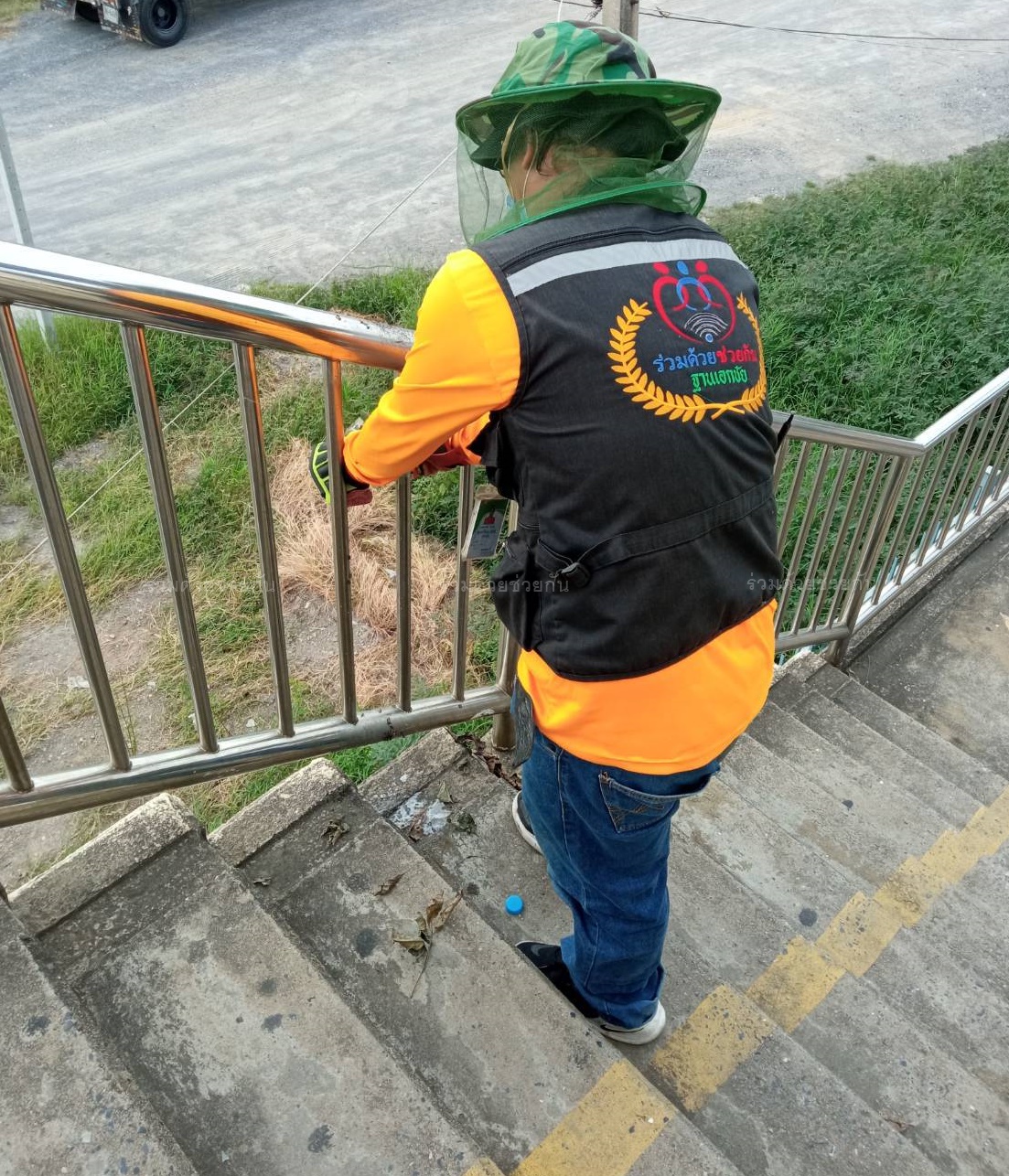 ตรวจสอบพบมีกลุ่มผึ้งจำนวนมาก กำลังรวมตัวกันเพื่อสร้างรัง บริเวณราวสะพาน อาสาฯ ดำเนินการกำจัดรังผึ้งเป็นที่เรียบร้อย เพื่อความปลอดภัยของผู้ใช้สะพานข้ามไปมา