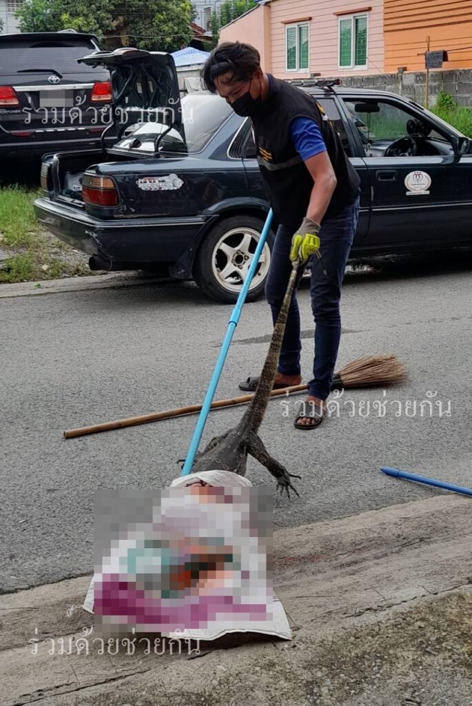 อาสาร่วมด้วยได้นำอุปกรณ์เข้าช่วยเหลือ ทำการคล้องจับตัวดึงออกมาจากบ้านได้เป็นผลสำเร็จ พร้อมนำใส่กระสอบ และนำไปปล่อยคืนสู่ธรรมชาติเป็นที่เรียบร้อย พื้นที่สน.คันนายาว