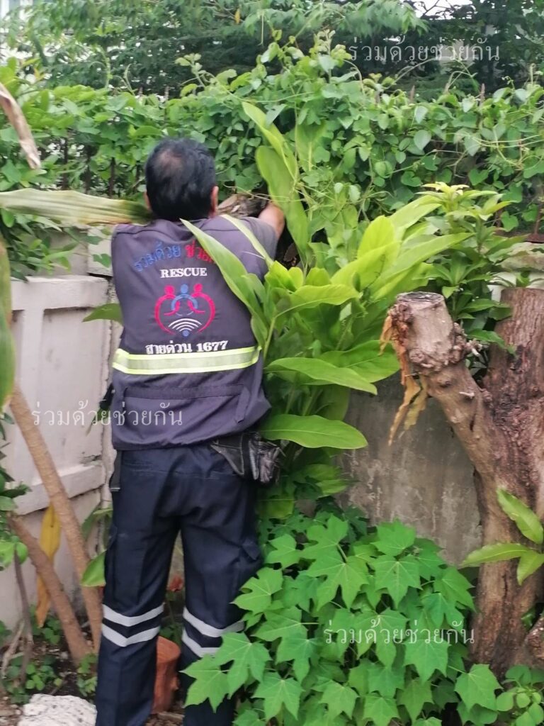 อาสาร่วมด้วยได้นำอุปกรณ์เข้าช่วยเหลือ ทำการจับตัวงูดึงลงมาจากกำแพงรั้วบ้านได้เป็นผลสำเร็จ พร้อมนำไปปล่อยคืนสู่ธรรมชาติเป็นที่เรียบร้อย พื้นที่สน.คันนายาว