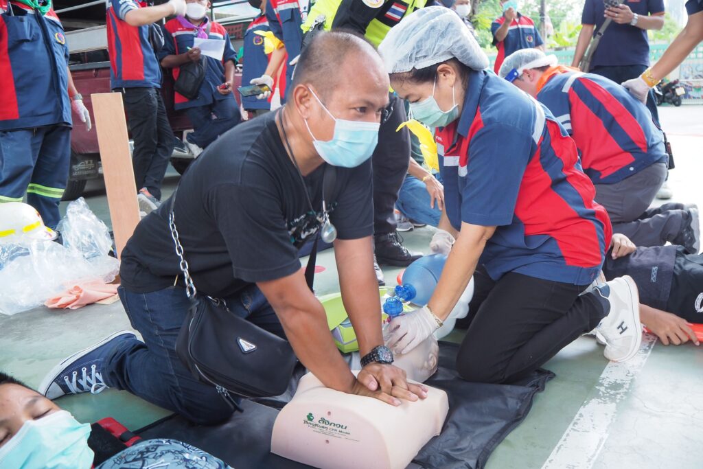 คุณอภิวัฒน์ รัตนนาคินทร์ ผอ.ร่วมด้วยช่วยกัน เปิดเผยว่า การจัดโครงการดังกล่าว เกิดความร่วมมือระหว่าง มูลนิธิร่วมด้วยช่วยกันสำนึกรักบ้านเกิด กับ สถานีดับเพลิงและกู้ภัยพระโขนง กองปฏิบัติการดับเพลิงและกู้ภัย 2 สำนักป้องกันและบรรเทาสาธารณภัย กทม. เพื่อให้ความรู้ความเข้าใจและร่วมซ้อมแผนระงับอัคคีภัยในชุมชน โดยจำลองสถานการณ์เสมือนจริง เกิดไฟไหม้ในชุมชน มีการแจ้งเหตุผ่านศูนย์สื่อสารร่วมด้วยช่วยกัน ประสานข้อมูลให้อาสาร่วมด้วยช่วยกัน อาสาบรเทาสาธารณภัย เข้าตรวจสอบจุดเกิดเหตุ สนับสนุนการดับเพลิงเบื้องต้น และประสานสถานีดับเพลิงและกู้ภัยพระโขนง ส่งเจ้าหน้าที่พร้อมรถน้ำเข้าระงับเหตุ รวมถึงจำลองเหตุการณ์มีผู้บาดเจ็บ การเข้าช่วยเหลือ การสาธิตการปฐมพยาบาล การทำ CPR การลำเลียงผู้ป่วย ผู้บาดเจ็บส่ง รพ. และรายการสถานการณ์ให้ศูนย์บัญชาการเหตุการณ์ได้รับทราบ