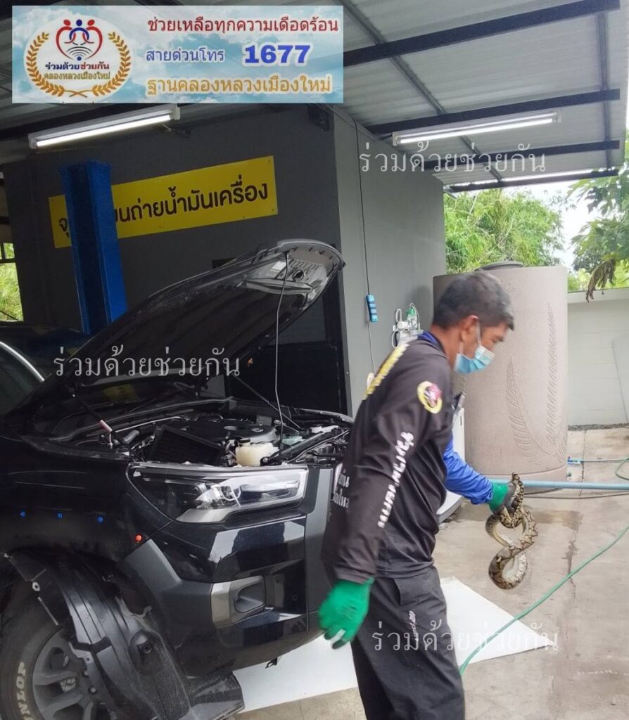 งูเหลือมเลื้อยเข้ารถ ร้องอาสาช่วยเหลือจับไปปล่อยป่า อยู่ถนนพหลโยธิน