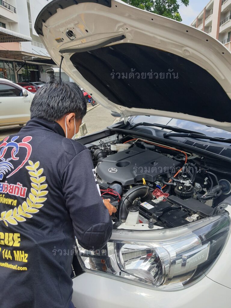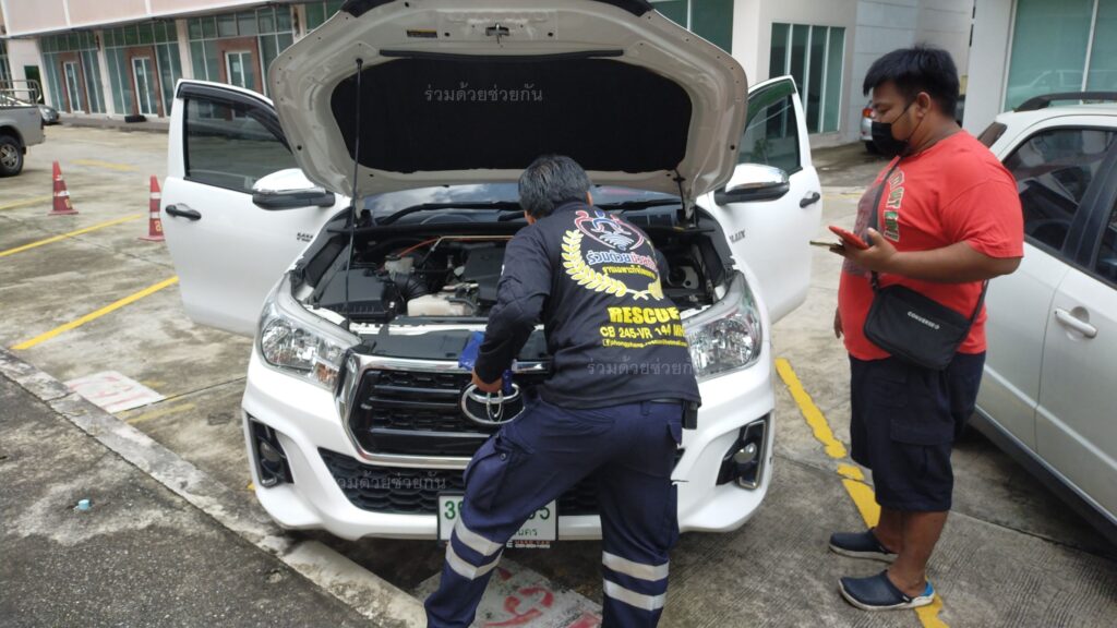 อาสาร่วมด้วยฯ ให้การช่วยเหลือรถกระบะแบตเตอรี่หมด หลังอาคาร เจเพรส ทาวเวอร์ 1 ถนนนางลิ้นจี่ เขตยานนาวา กรุงเทพฯ