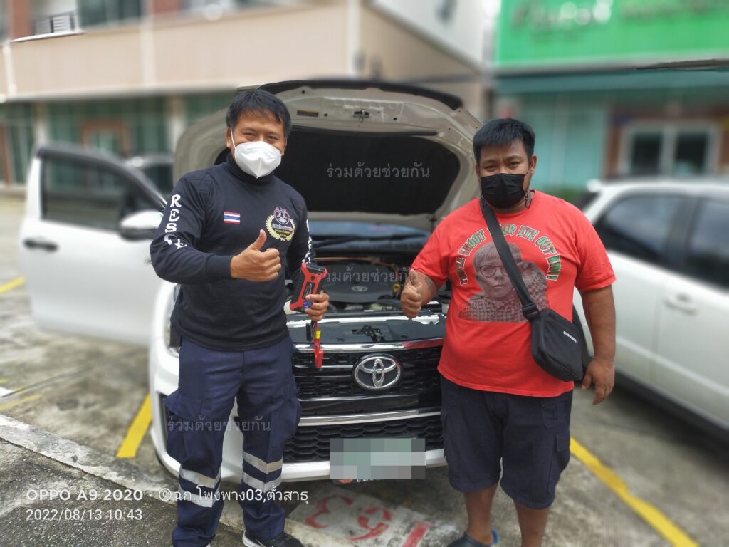 อาสานำอุปกรณ์เข้าช่วยเหลือพ่วงแบตเตอรี่ได้สำเร็จ รถสตาร์ทติดขับเคลื่อนต่อไปได้