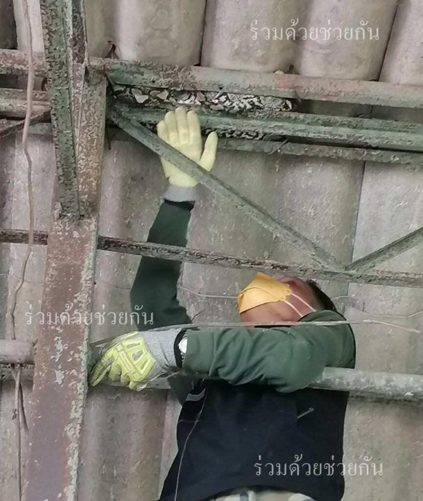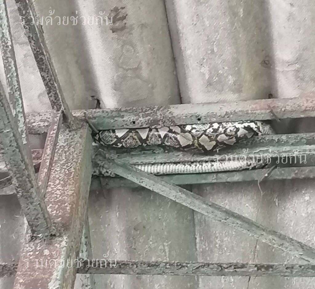 งูเหลือมขดตัวอยู่ใต้หลังคา ถ.สวนสยาม ซอย 22 อาสาร่วมด้วยเร่งช่วยจับ