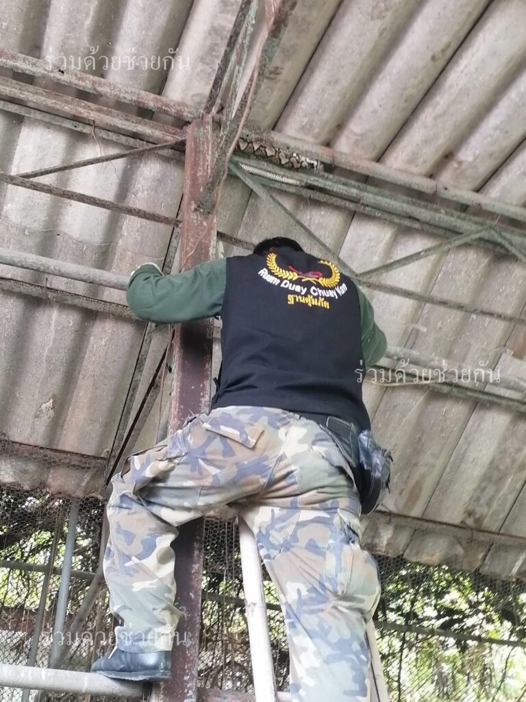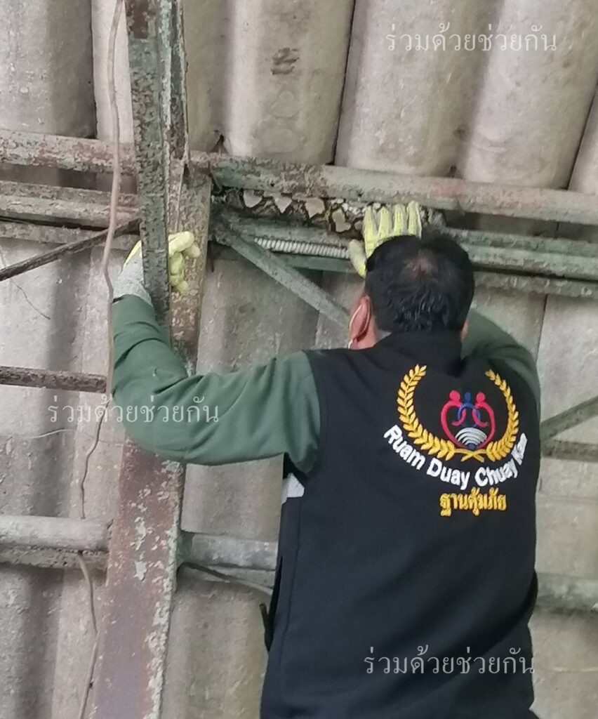 อาสาร่วมด้วยได้นำอุปกรณ์เข้าช่วยเหลือ ทำการปีนบันไดขึ้นไปจับตัวงูดึงลงมาจากใต้หลังคาได้เป็นผลสำเร็จ และนำไปปล่อยคืนสู่ธรรมชาติเป็นที่เรียบร้อย พื้นที่สน.บางชัน