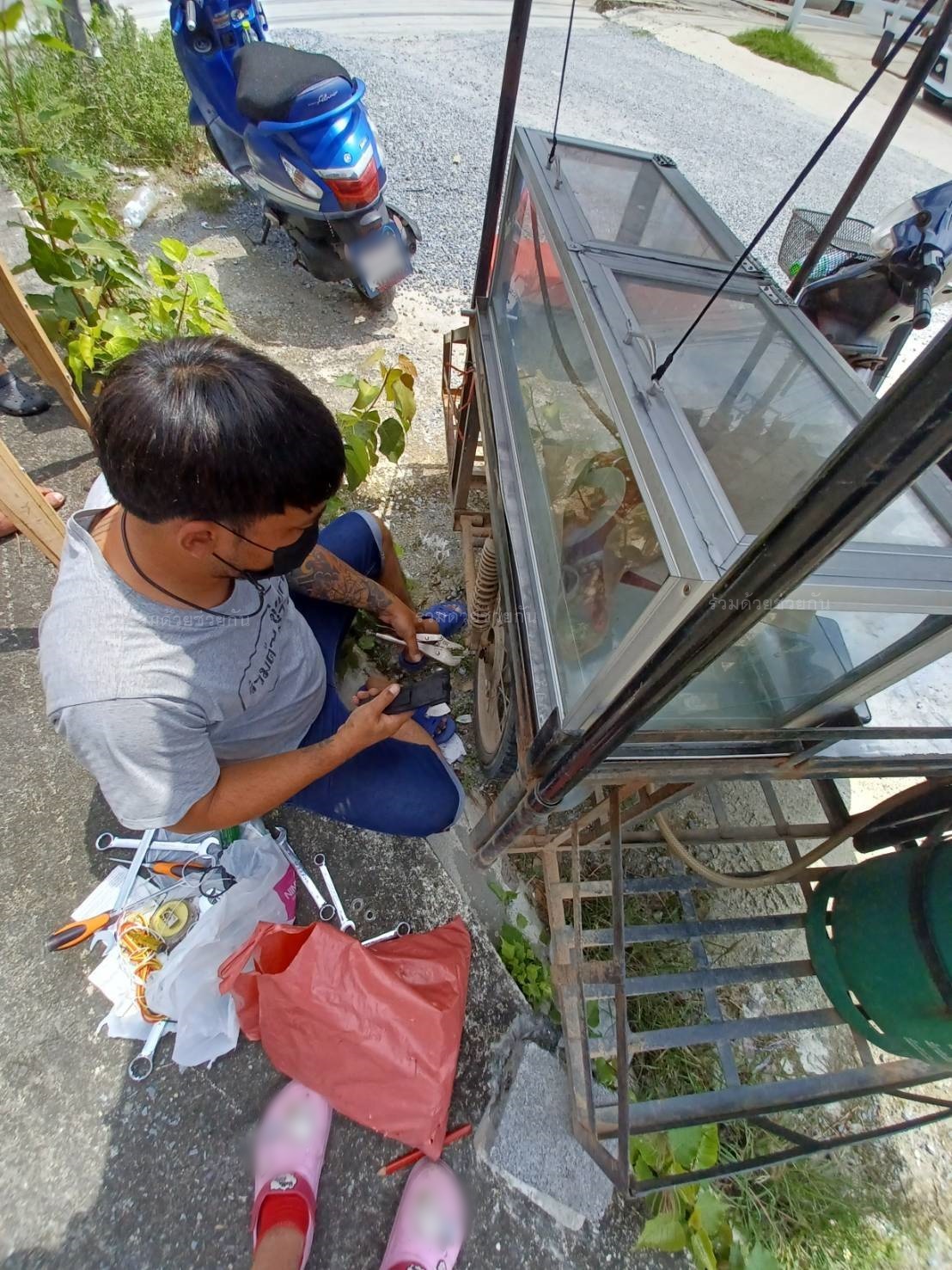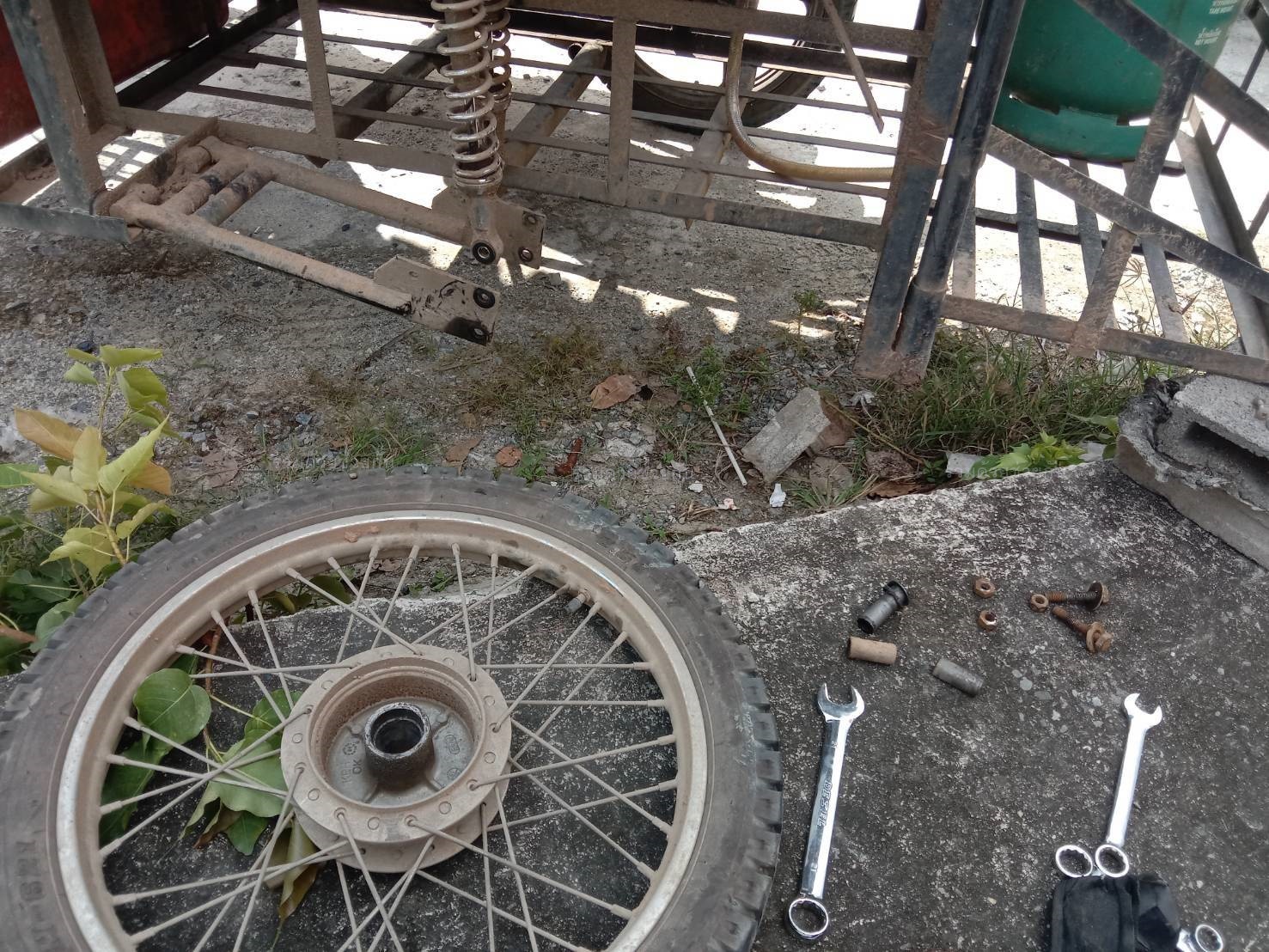 ตรวจสอบพบรถจักรยานยนต์พ่วงข้าง เเกนล้อพ่วงคดเเละลูกปืนล้อเเตก ข้างซ้ายและขวา อาสาฯ ช่วยแก้ไขให้เรียบร้อย รถสามารถใช้งานได้ตามปกติ