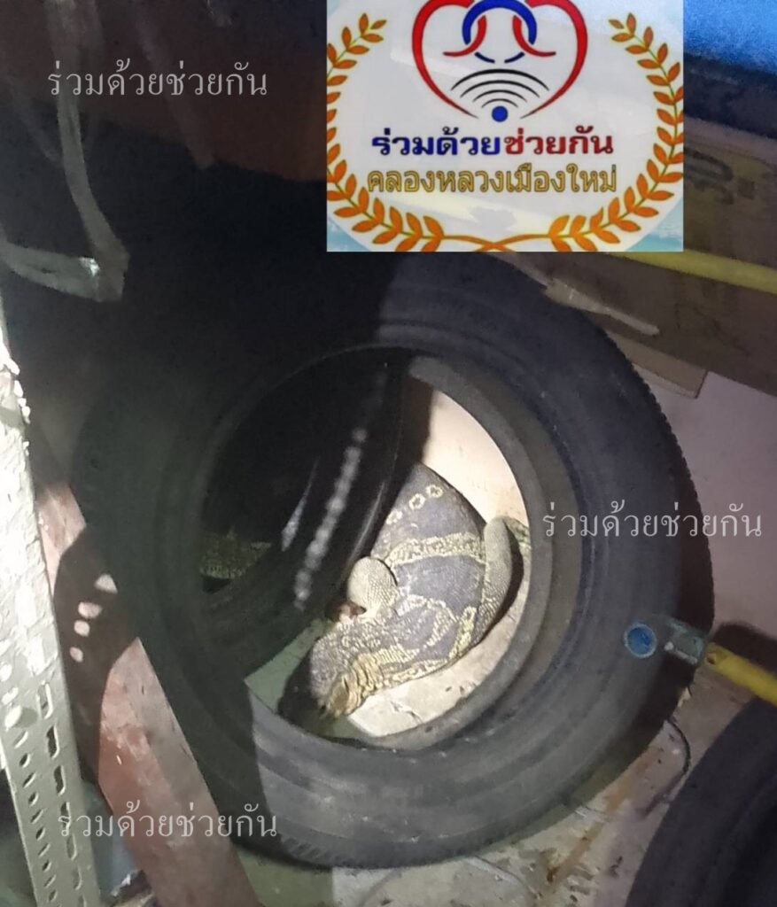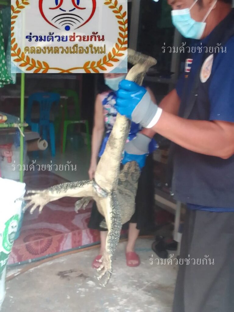 อาสาร่วมด้วยคลองหลวงเมืองใหม่ 102 รับแจ้งจากประชาชนขอความช่วยเหลือจับสัตว์เลื้อยคลาน ภายในบ้านพัก หมู่บ้านไทยสมบูรณ์ 3 ถ.เลียบคลองสาม ต.คลองสาม อ.คลองหลวง จ.ปทุมธานี พบเป็นตัวเงินตัวทองจำนวน 1 ตัว ความยาวประมาณ 2 เมตร หลบซ่อนตัวอยู่ใต้ล้อรถภายในห้องเก็บของหลังบ้าน