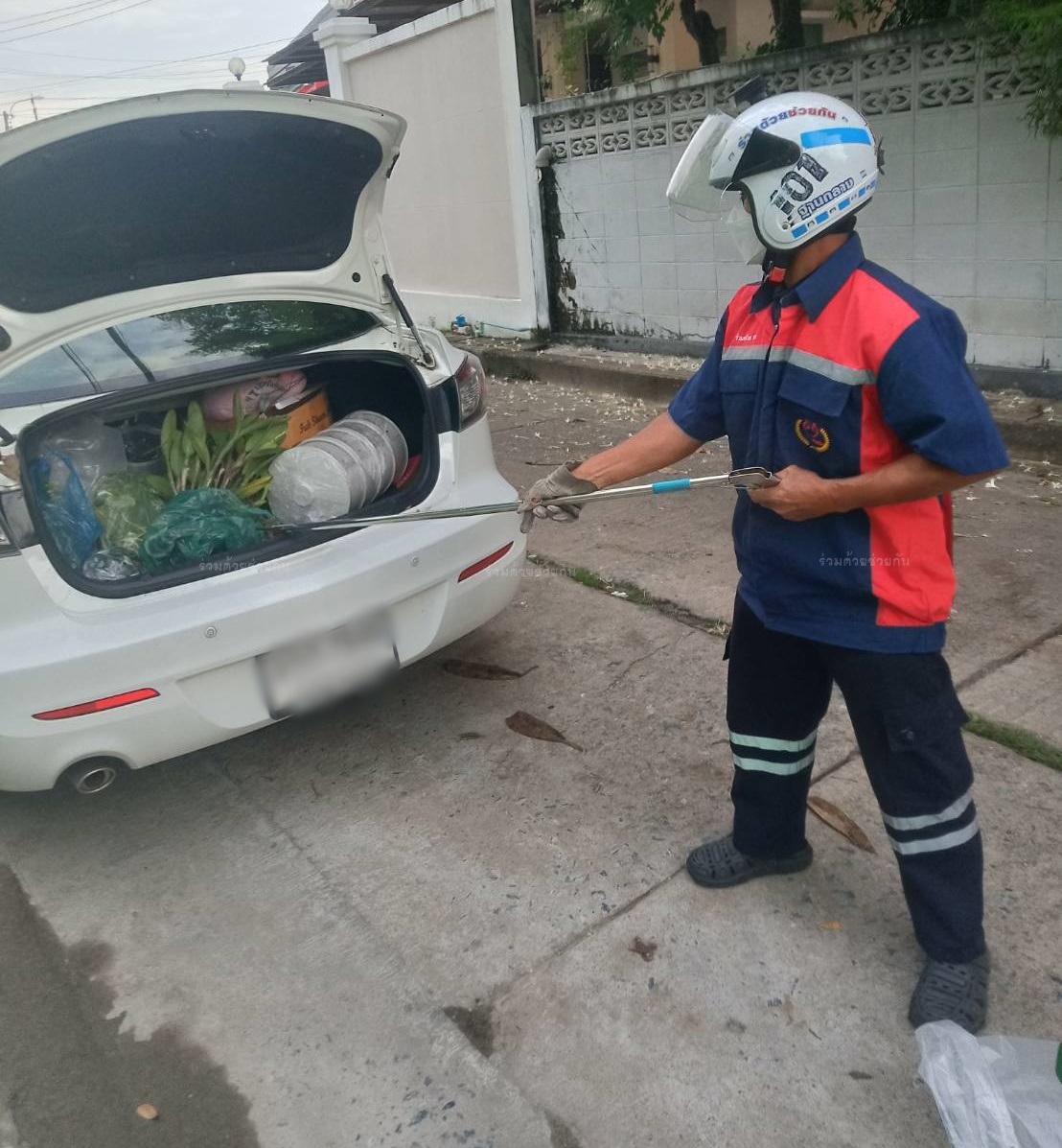 คุณภานุวัฒน์ ขอความช่วยเหลือ มีงูเลื้อยเข้าซุกท้ายรถเก๋ง จอดอยู่หน้าบ้าน ซอยเสนานิคม 1 แขวงจรเข้บัว เขตลาดพร้าว กรุงเทพฯ ศูนย์สื่อสารร่วมด้วยช่วยกัน ประสาน อาสาร่วมด้วยช่วยกัน เข้าไปช่วยจับ