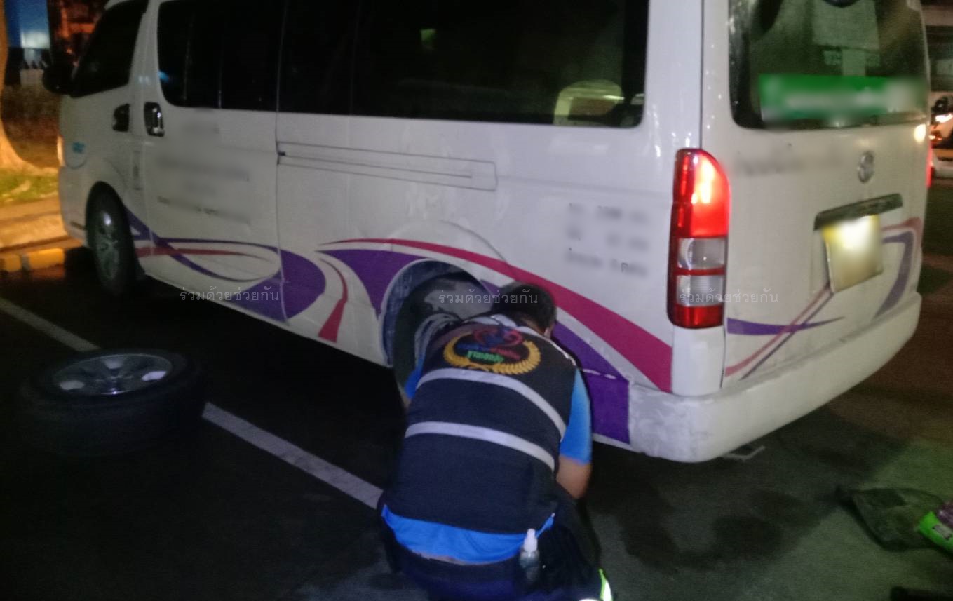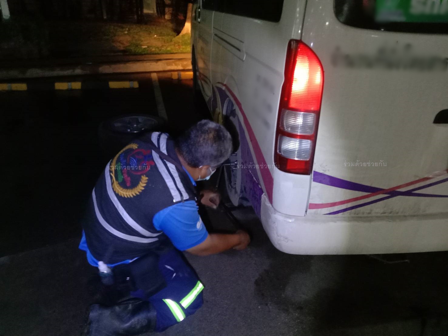 ตรวจรถก่อนออกเดินทาง รถตู้ยางแตก แจ้งอาสาร่วมด้วยฯ เข้าช่วย