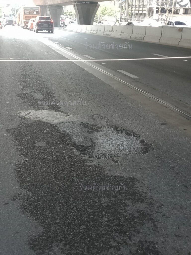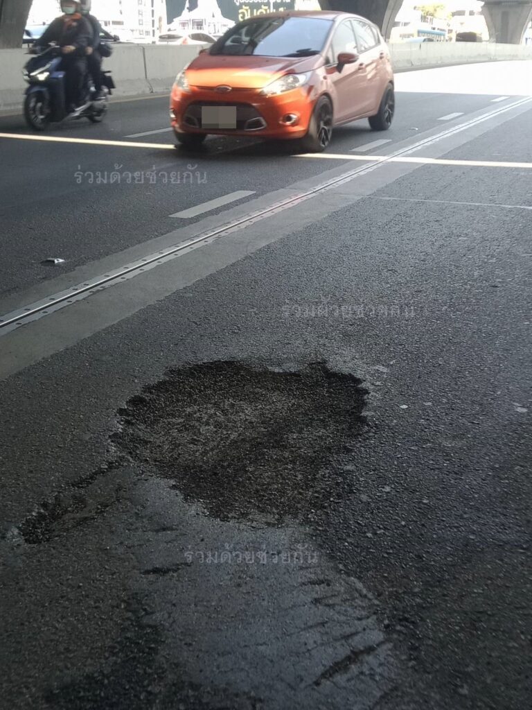เตือนระวัง!! ถนนเป็นหลุม บนสะพานข้ามคลองพระโขนง ถนนสุขุมวิท