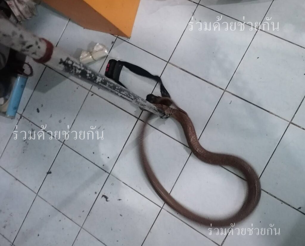 อาสาร่วมด้วยคุ้มภัย 006 รับแจ้งจากประชาชนขอความช่วยเหลือจับสัตว์เลื้อยคลาน ภายในบ้านพัก ถ.พระยาสุเรนทร์ ซอย 20 เขตคลองสามวา กรุงเทพมหานคร พบเป็นงูเห่าจำนวน 1 ตัว ความยาว 1 เมตรครึ่ง หลบซ่อนตัวอยู่ใต้ตู้เก็บของภายในบริเวณที่พักอาศัย