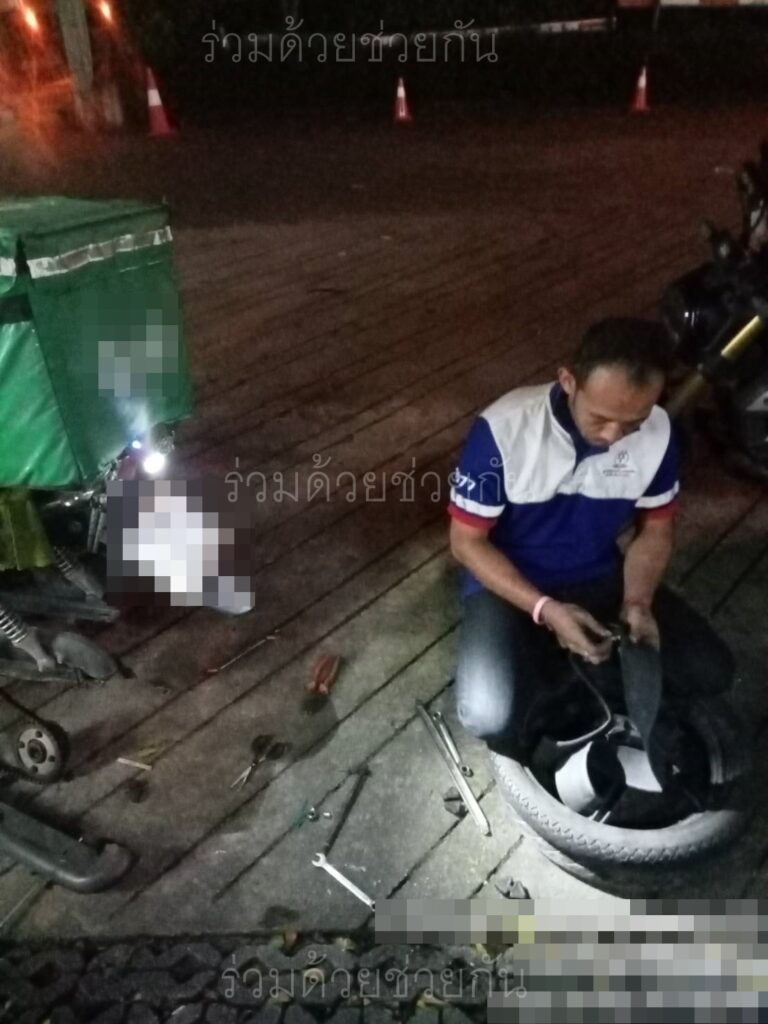 อาสาร่วมด้วยฯ ช่วยรถจักรยานยนต์ล้อยางรั่ว ตรงข้าม รพ.สมิติเวช ถนนศรีนครินทร์