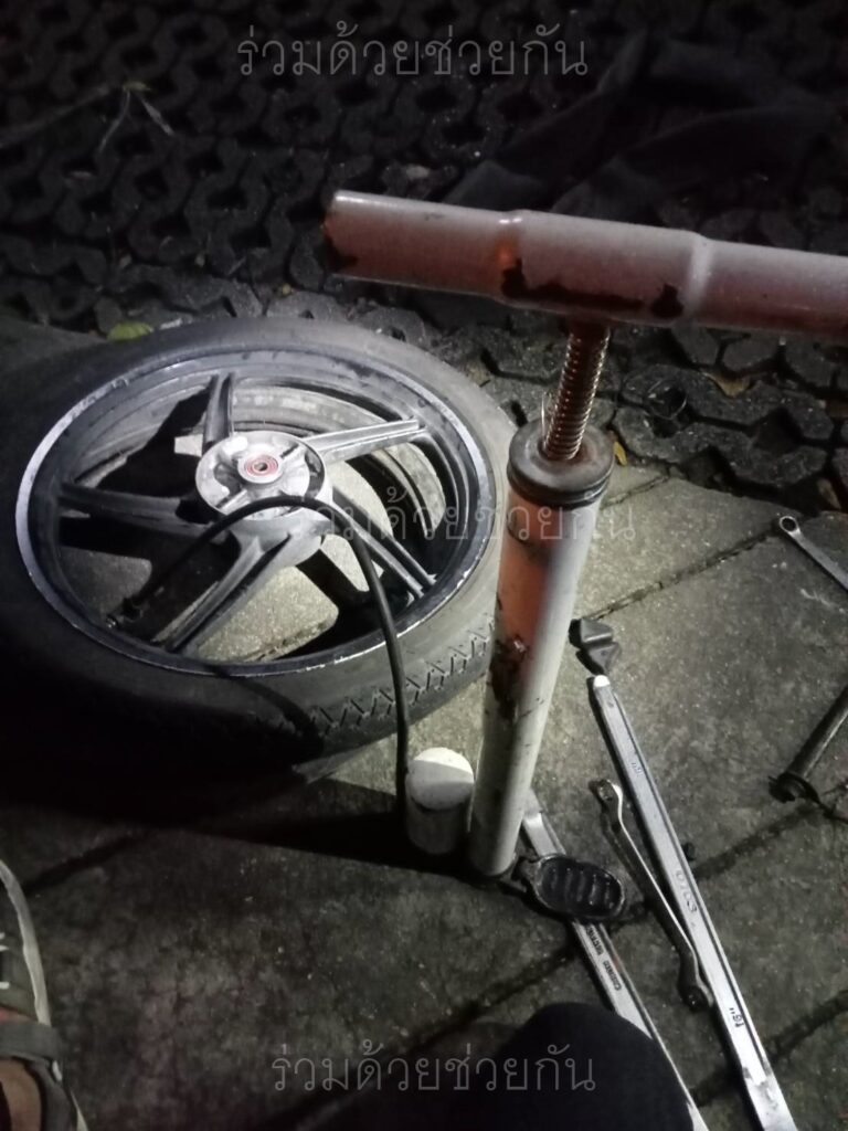 อาสาร่วมด้วยฯ ดำเนินการใช้อุปกรณ์แก้ไขล้อยางรั่วได้สำเร็จ สามารถขับขี่รถต่อไปได้