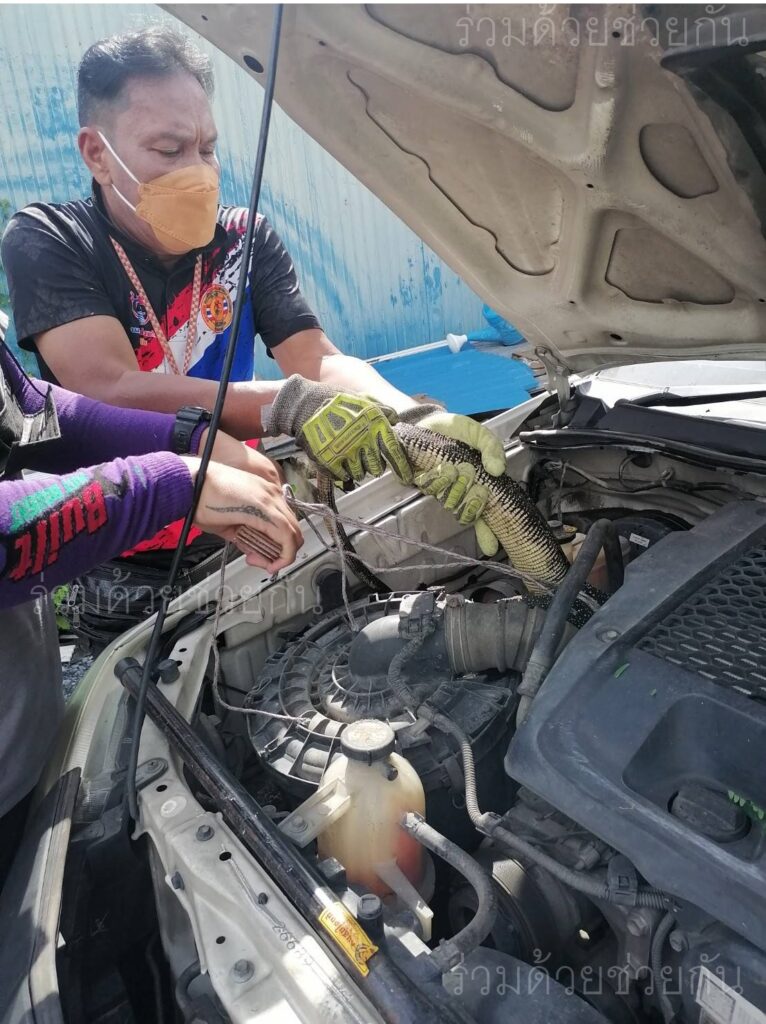 รับแจ้ง พบตัวเงินตัวทองเข้าห้องเครื่องรถกระบะ ซอยสามวา 6 ถนนสามวา เขตมีนบุรี กทม.