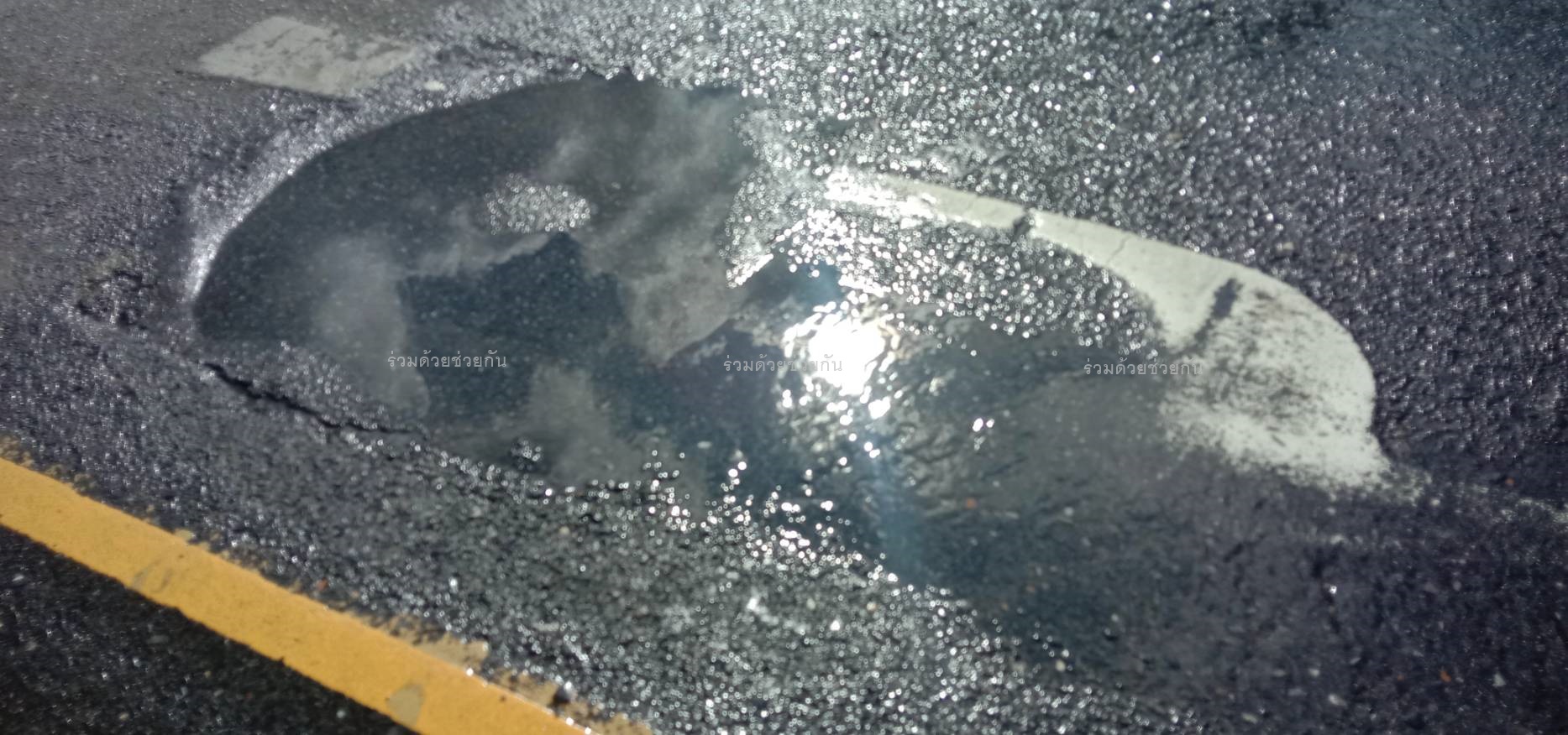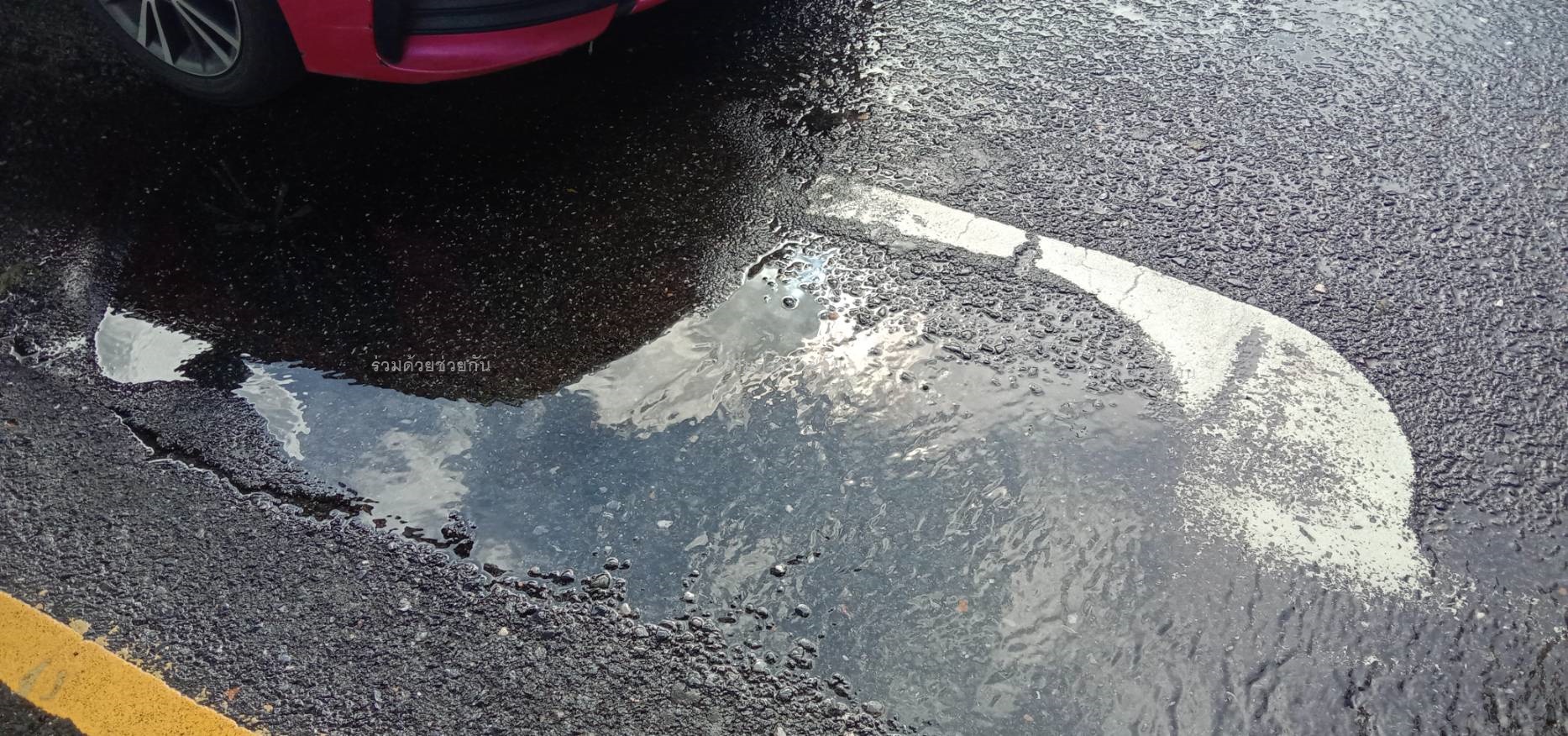 ท่อประปาแตก น้ำเอ่อท่วมผิวจราจร แจ้งจนท.เร่งแก้ไข
