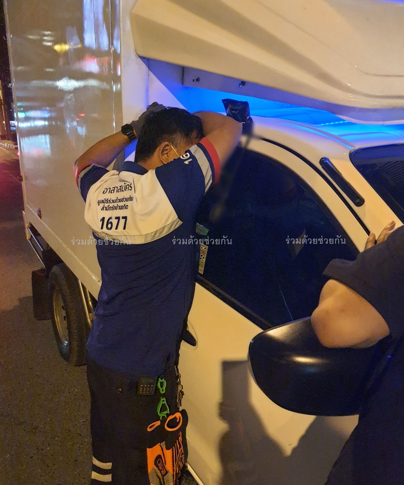 ตรวจสอบพบลืมกุญแจไว้ในรถกระบะ นิสสัน สีขาว อาสาฯ จึงนำอุปกรณ์เฉพาะทางช่วยเปิดประตูได้สำเร็จ นำกุญแจออกมาจากรถได้เป็นที่เรียบร้อย