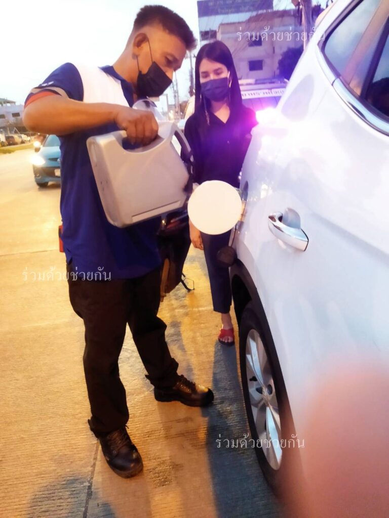ประชาชนขอความช่วยเหลือรถน้ำมันหมด จอดอยู่ถนนกรุงเทพกรีฑาตัดใหม่ อาสาร่วมด้วยได้ไปจัดซื้อน้ำมันไปเติมให้ รถขับเคลื่อนต่อไปได้