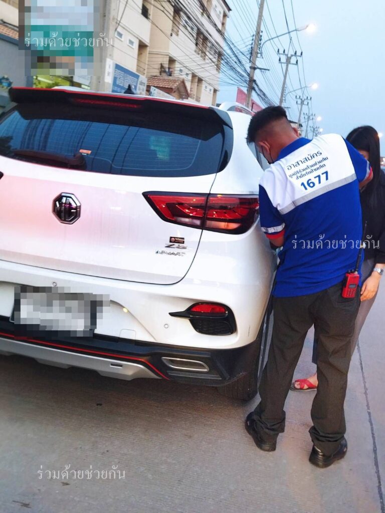 อาสาร่วมด้วยช่วยกัน รับแจ้งจากประชาชนขอความช่วยเหลือรถจอดเสีย น้ำมันหมด เป็นรถยนต์เอ็มจี แซดเอส สีขาว จอดอยู่ถนนกรุงเทพกรีฑาตัดใหม่ แขวงหัวหมาก เขตบางกะปิ กรุงเทพฯ