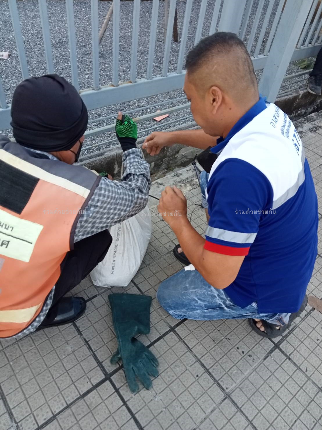 ตรวจสอบพบงูเหลือมความยาวกว่า 4 เมตร เลื้อยขดตัวอยู่ซอกกำแพงรั้วหน้าโรงเรียน อาสาฯ จึงนำอุปกรณ์จับไว้ได้ ก่อนจับใส่กระสอบนำไปปล่อยคืนสู่ธรรมชาติต่อไป