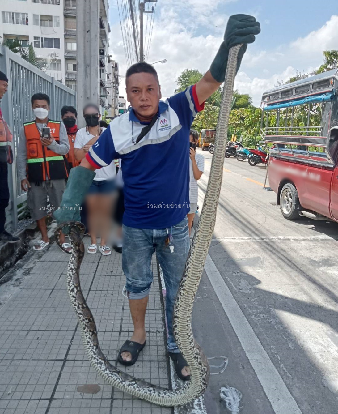 แตกตื่น!! งูเหลือมโผล่หน้าโรงเรียน ย่านประเวศ