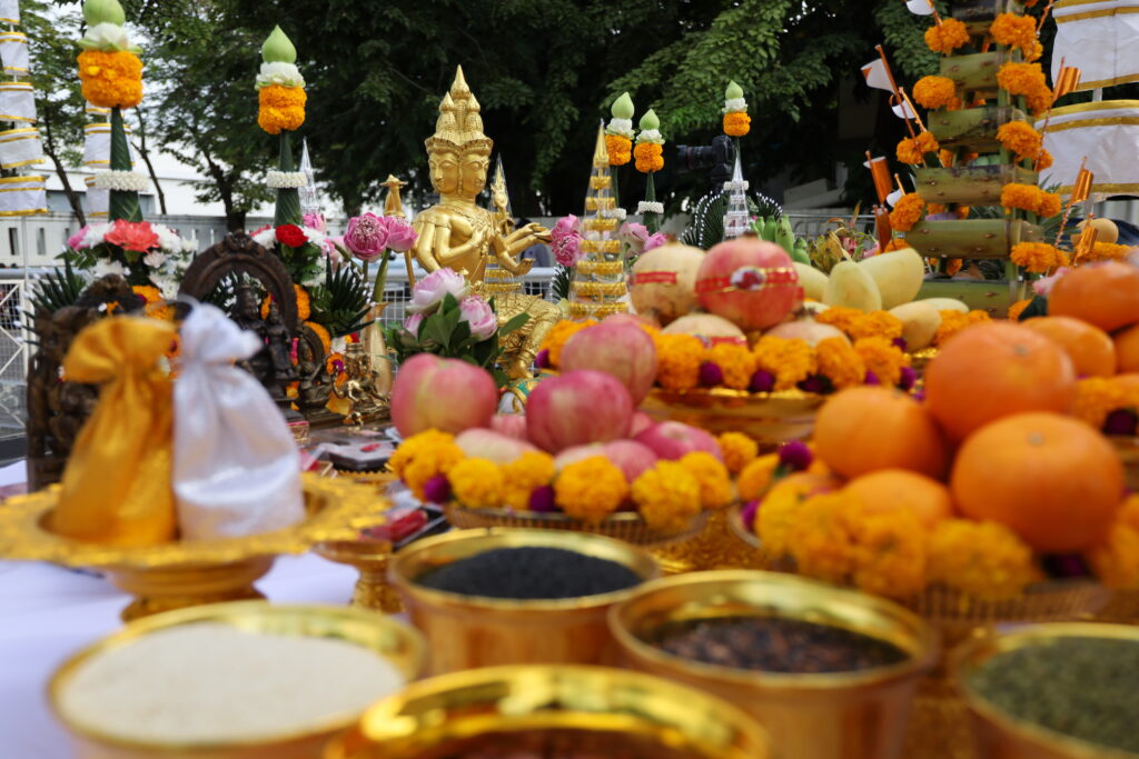 พิธีอัญเชิญท้าวมหาพรหมขึ้นเทวาลัย อาคารสำนักข่าว inn