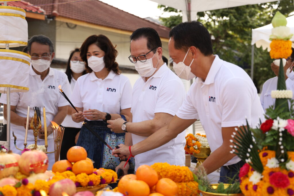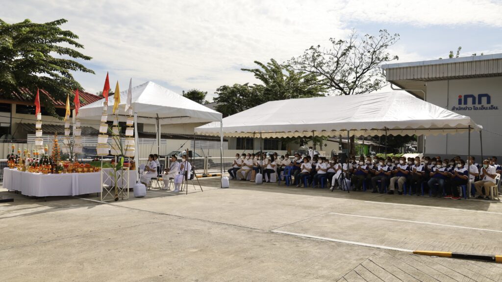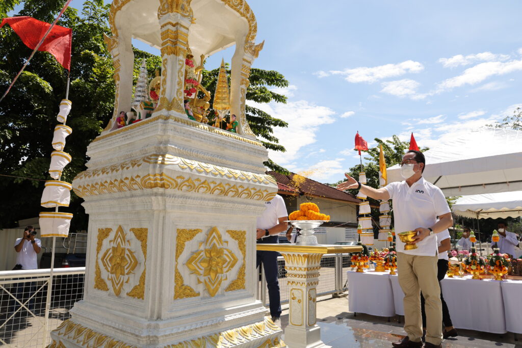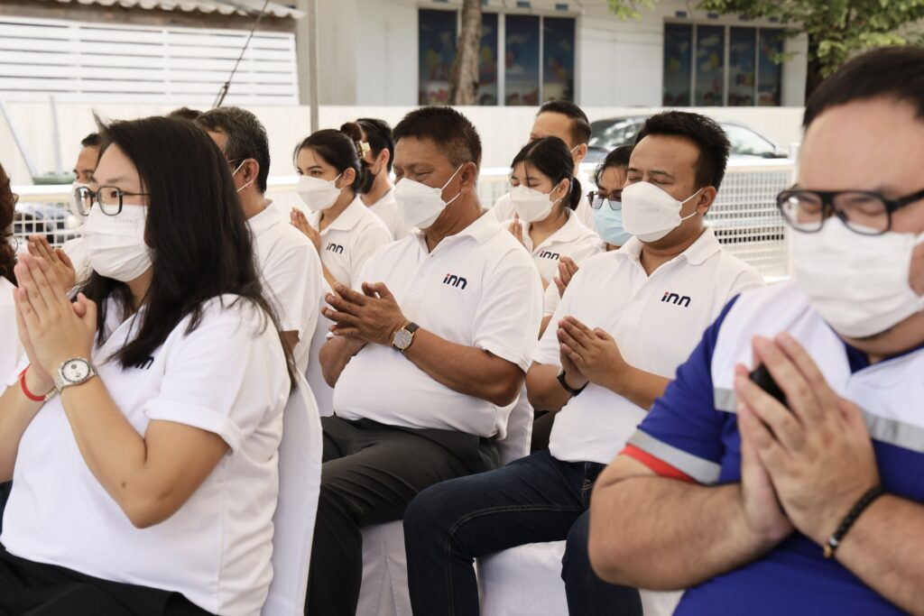 คณะผู้บริหาร พนักงาน และอาสาร่วมด้วยช่วยกัน ร่วมพิธีบวงสรวงและอัญเชิญท้าวมหาพรหมขึ้นเทวาลัย ณ อาคารสำนักข่าว ไอ.เอ็น.เอ็น. เพื่อความเป็นสิริมงคล